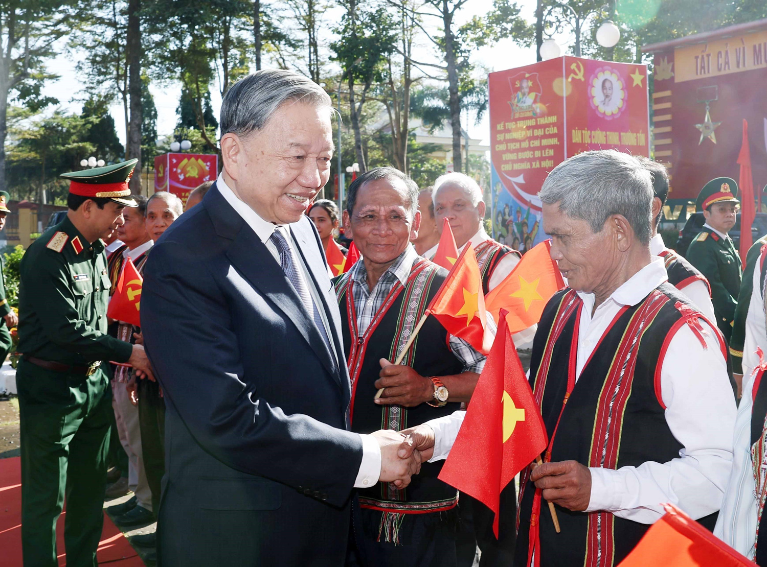 ທ່ານເລຂາທິການໃຫຍ່ ໂຕເລິມ ພົບປະກັບຜູ້ອະວຸໂສ, ຫົວໜ້າບ້ານ ແລະ ຄົນງານດີເດັ່ນ ໃນແຂວງຢາລາຍ, ວັນທີ 6 ມັງກອນ 2025. _ພາບ: TTXVN