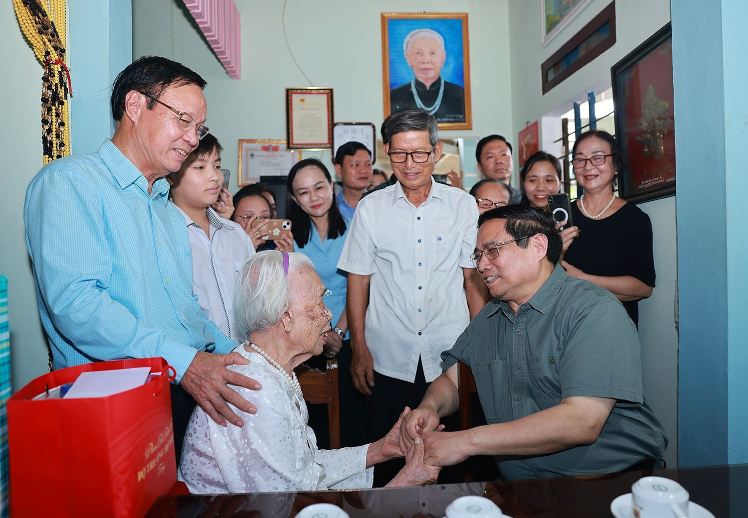 ທ່ານ ຟ້າມມິງຈິ໊ງ, ກຳມະການກົມການເມືອງ, ນາຍົກລັດຖະມົນຕີ ຢ້ຽມຢາມແມ່ຫວຽດນາມວິລະຊົນ ດ່າວທີ້ວູຍ ຢູ່ບ້ານ ເທື້ອງສາ, ຕາແສງ ຫາຍລັງ, ແຂວງ ກວ໋າງຈີ້ _ພາບ: TTXVN