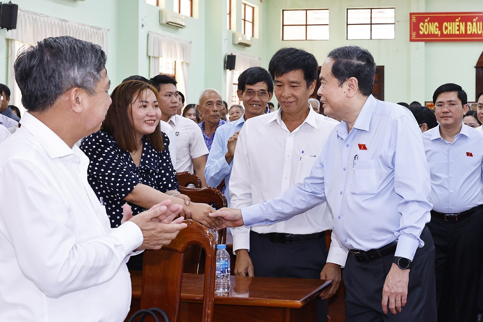 ທ່ານ ເຈິ່ນ ແທງ ເໝິນ, ກຳມະການກົມການເມືອງ, ປະທາສະພາແຫ່ງຊາດ ພ້ອມກັບຄະນະຜູ້ແທນສະພາແຫ່ງຊາດ ພົບປະກັບຜູ້ມີສິດເລືອກຕັ້ງ ຫຼັງຈາກກອງປະຊຸມສະໄໝທີ 9 ຂອງສະພາແຫ່ງຊາດຊຸດທີ 15 ທີ່ຕາແສງ ວີ້ຖູຍ, ນະຄອນ ເກີນເທີ _ພາບ: TTXVN